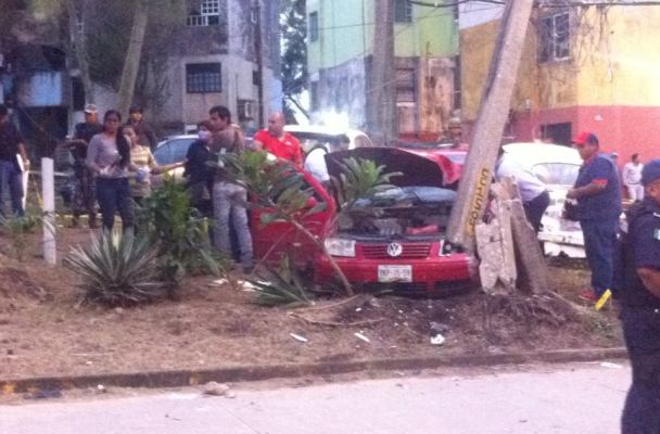 Murieron a bordo del jetta rojo tras la persecución. Se impactaron en un poste, acribillados. (Foto José Alor)