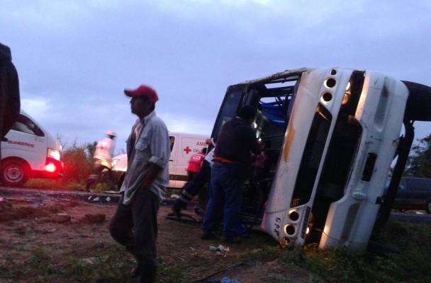 Hasta ahora, no se registran fallecidos en esta volcadura de la unidad que se dirigía a Cerritos.