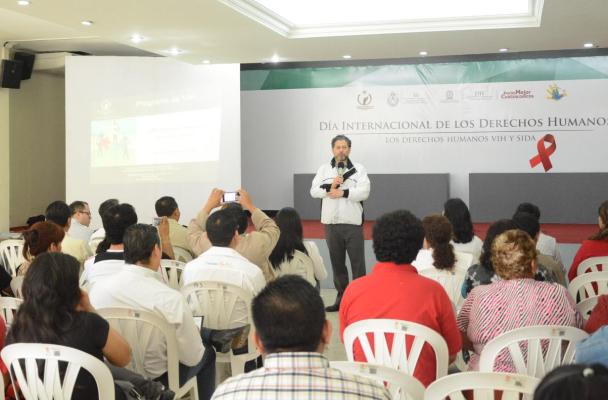 Coatzacoalcos.- En el marco del Día Internacional de los Derechos Humanos este 10 de diciembre, se presentó en la Sala de Cabildo del Ayuntamiento la ponencia “Los Derechos Humanos VIH-Sida”, por parte del director del programa VIH-Sida de la Comisión Nacional de los Derechos Humanos, Ricardo Hernández Forcada.