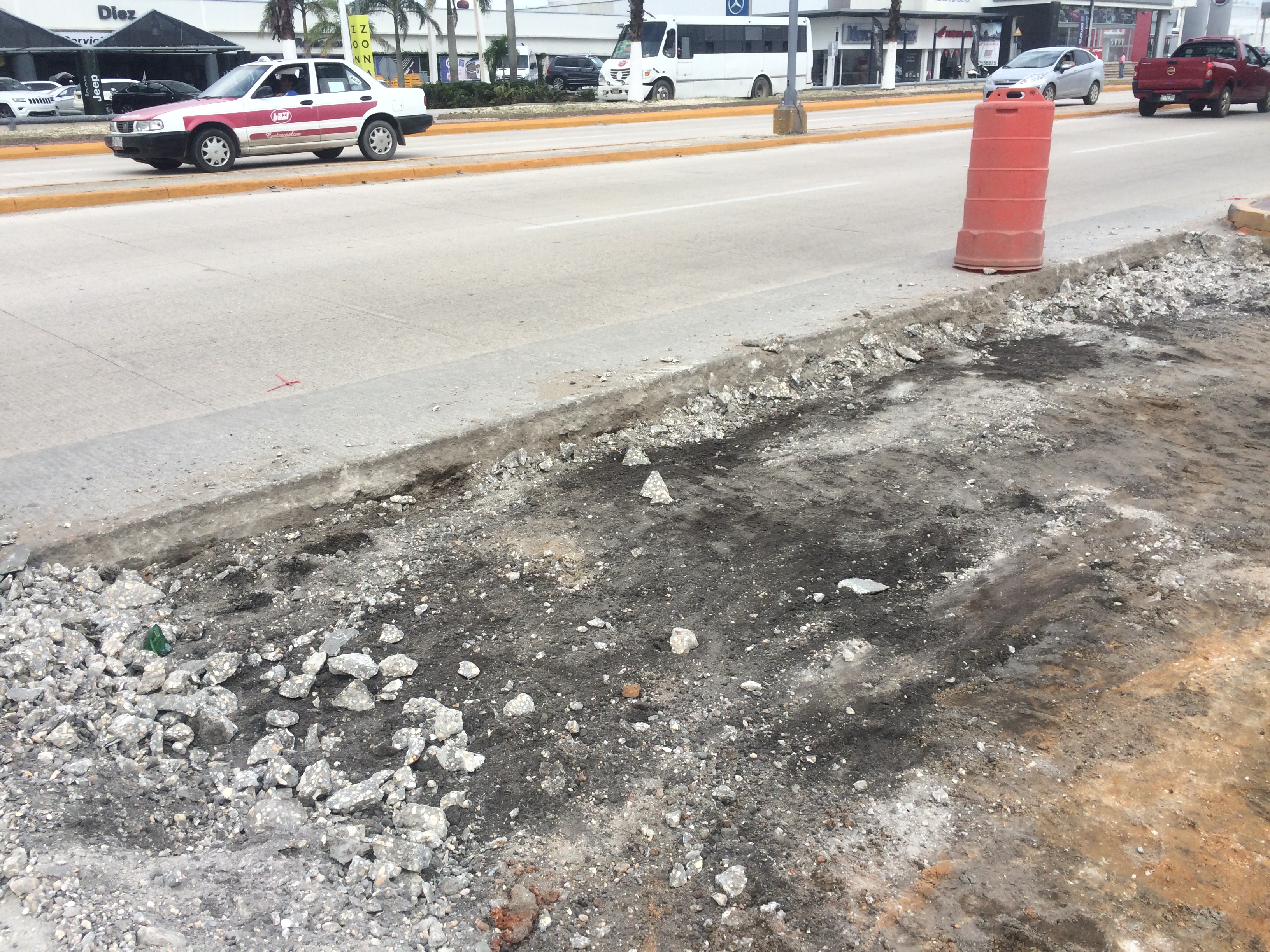 Esta pavimentación recién estrenada con concreto hidráulico forma parte de una de las magnas obras anunciadas por el Ayuntamiento de Coatzacoalcos y ya tiene signos visibles de destrucción.