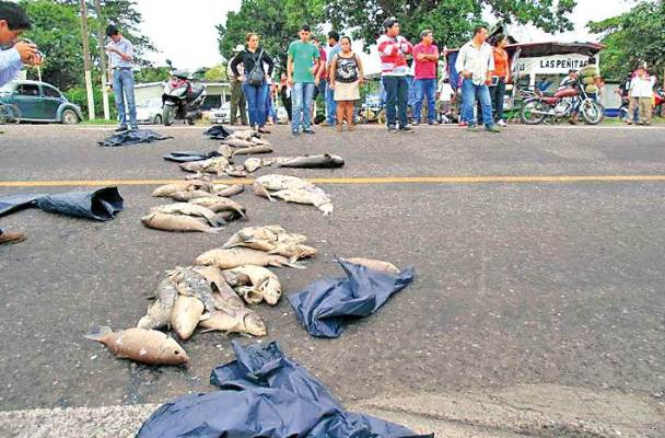Pescadores bloquean carretera por ecocidio en Río Tonto.