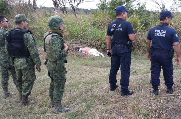 De inmediato se movilizaron elementos del Ejército, Fuerza Civil, Policía Estatal y Naval quienes dieron fe del acontecimiento, encontrando el cadáver vendado de los ojos y con marcas de violencia.