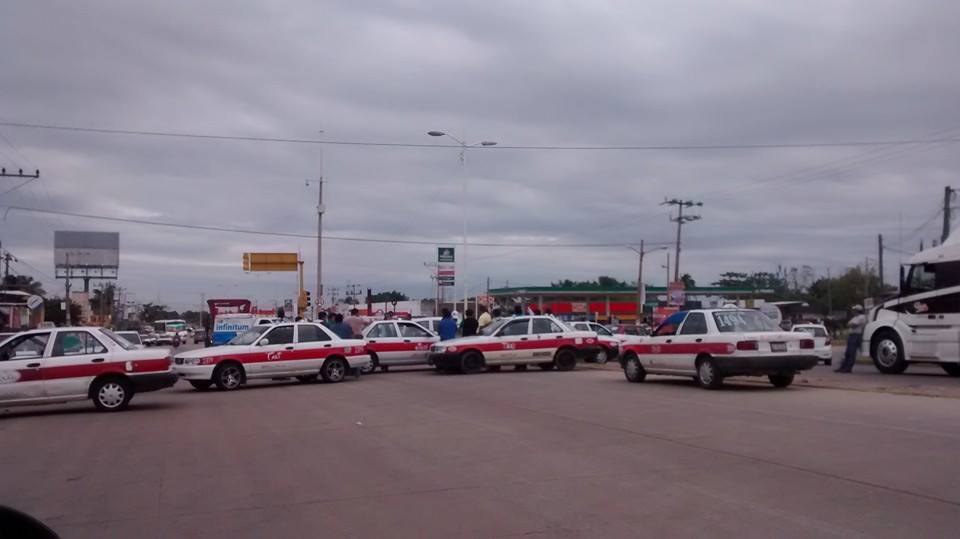 Minatitlán.- Un grupo de taxistas de esta localidad bloquearon el bulevar Tecnológicos en Minatitlán en reclamo de aumento de tarifas y rehabilitación de caminos.