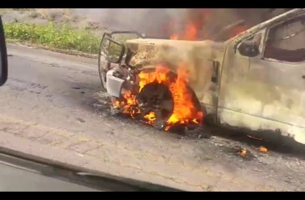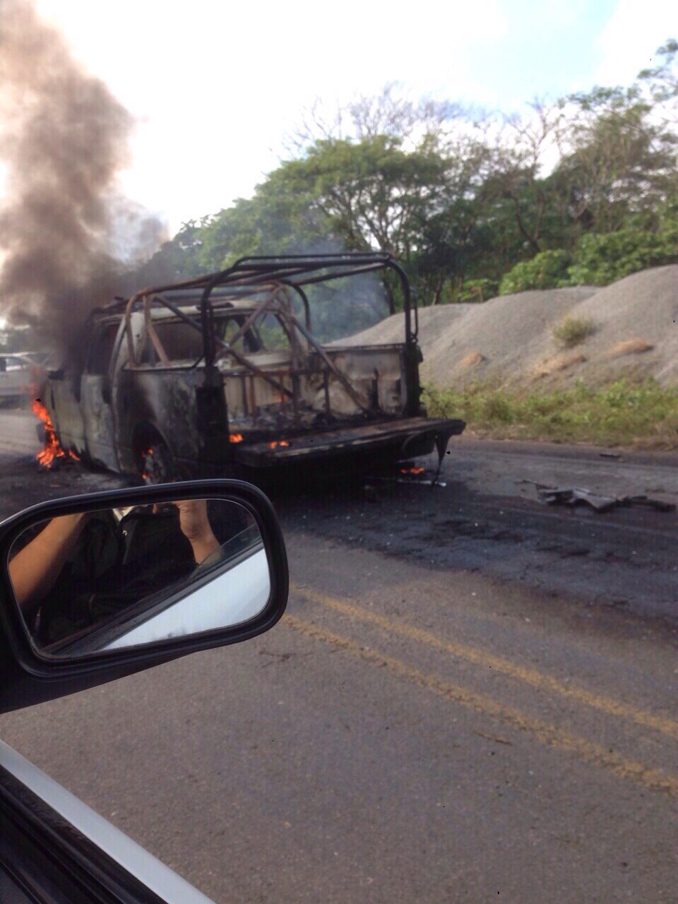 Cosomalopan.- Una patrulla de Seguridad Pública Municipal tripulada por oficiales resultó incendiada tras sufrir un ataque en emboscada con granadas explosivas, por sujetos desconocidos que estaban fuertemente armados.