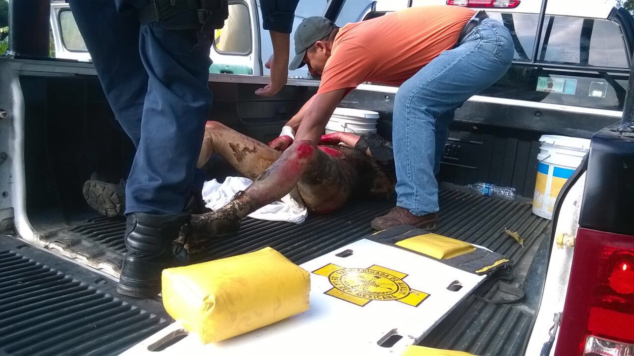 Junto con sus oficiales, el comandante de la Policía Municipal de Lerdo de Tejada sufrió esta emboscada cuando viajaba en su patrulla acompañado por sus elementos y -al parecer- también iban a bordo personal de Protección Civil en la camioneta.