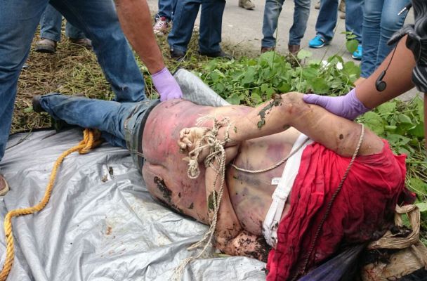 En Coatzintla, apareció este ejecutado en un terreno baldío. Estaba severamente golpeado, desfigurado, y amarrado con cinta canela.