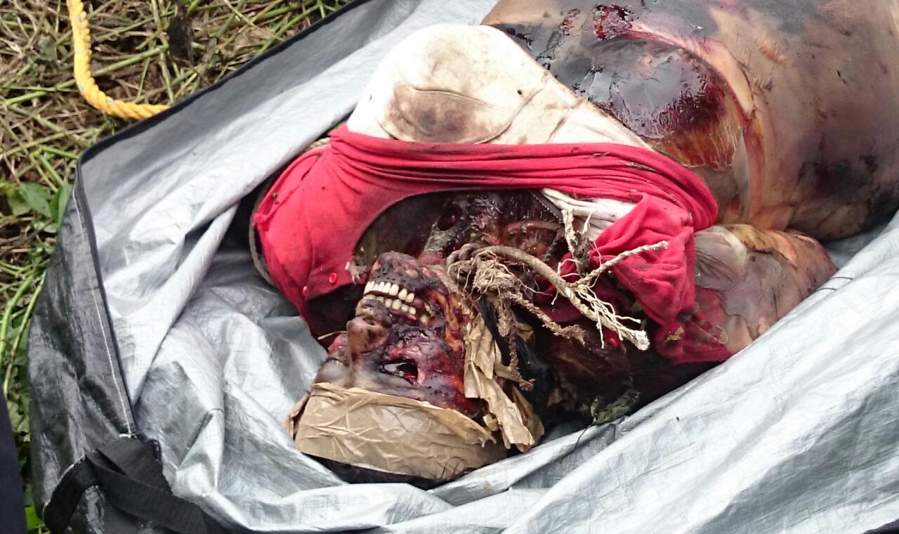 Tenía el rostro desfigurado, posiblemente por la fauna de la zona rural, además la víctima fue amarrada de las manos con un mecate de nylon amarillo y con cinta canela en los ojos.