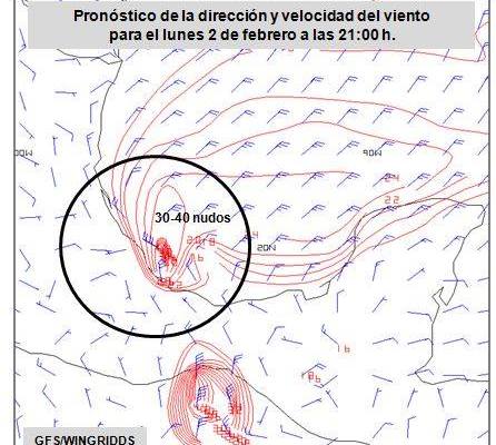 Se podrían registrar velocidades máximas sostenidas hasta de 40 nudos; esto representa 74 km/h e implica rachas mayores de 90 km/h.