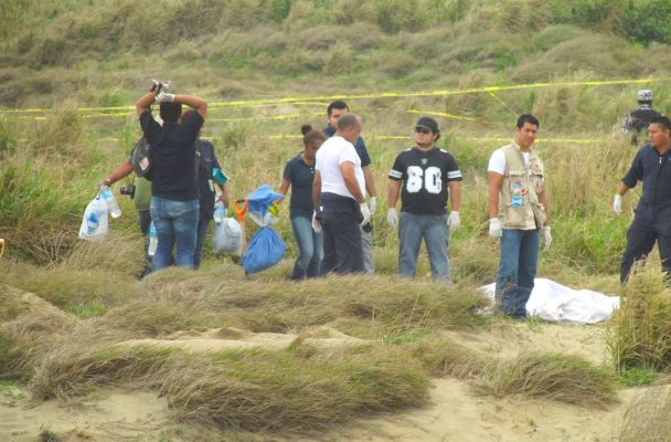 Autoridades forenses y ministeriales en levantamiento colectivo de cadáveres.