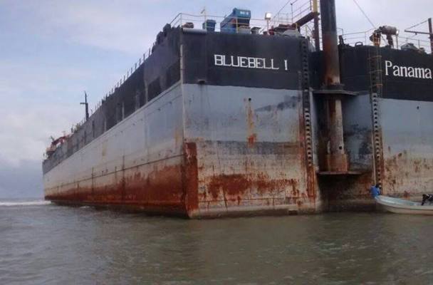 Se trata de la barcaza colombiana BlueBell Panama, un barco de 135 metros de largo, por 40 metros de ancho y 24 metros de alto, que encalló hace meses, desde el pasado diciembre del 2014 en las playas de Mecayapan.