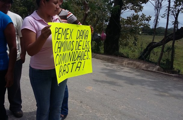 Coatzacoalcos.- Habitantes del ejido La Esperanza de la zona rural de esta ciudad bloquearon el principal acceso a las estaciones de bombeo de Pemex, en ese ejido, en reclamo de obras de rehabilitación de caminos.