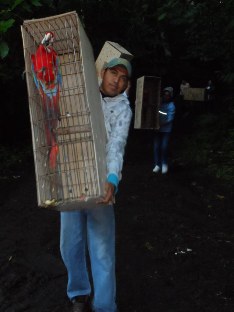Todas las aves que serán liberadas en Nanciyaga fueron traídas desde las selvas del sureste mexicano, del aviario del parque natural X-Caret de Cancún, Quintana-Roo.