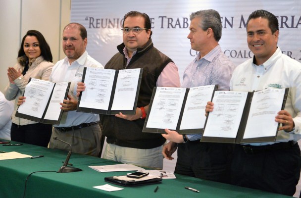 Durante la visita del Gobernador Javier Duarte, con motivo de la reunión de trabajo en Materia de Infraestructura de Agua con la CONAGUA, asistieron los alcaldes de los municipios que recibirán recursos federales este año con el Fonden.