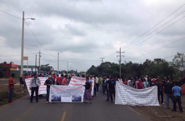 Un grupo de jóvenes de Hueyapan de Ocampo bloquearon la carretera costera este medio día, en reclamo de desapariciones forzadas.