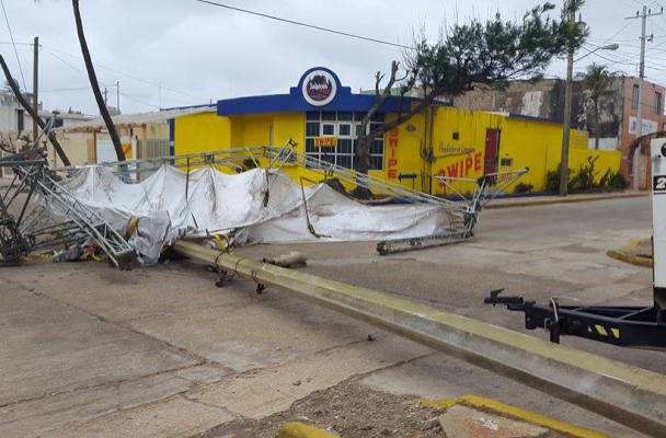El fuerte norte impactó Coatzacoalcos, han caído anuncios panorámicos.