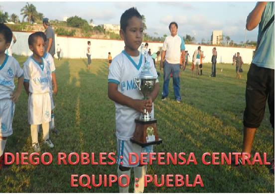 Se trata del pequeño Diego Robles Rodríguez, quien se desempeña como pilar de la defensa del equipo Puebla en Coatzacoalcos y ha ganado dos campeonatos, durante el 2013 y el 2014.