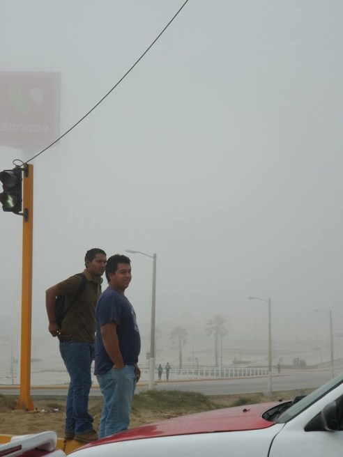 El choque de vientos fríos con aire caliente tropical ocasionó un raro fenómeno climático en el Puerto de Coatzacoalcos en la que una densa neblina cubrió la parte de playas de la ciudad.