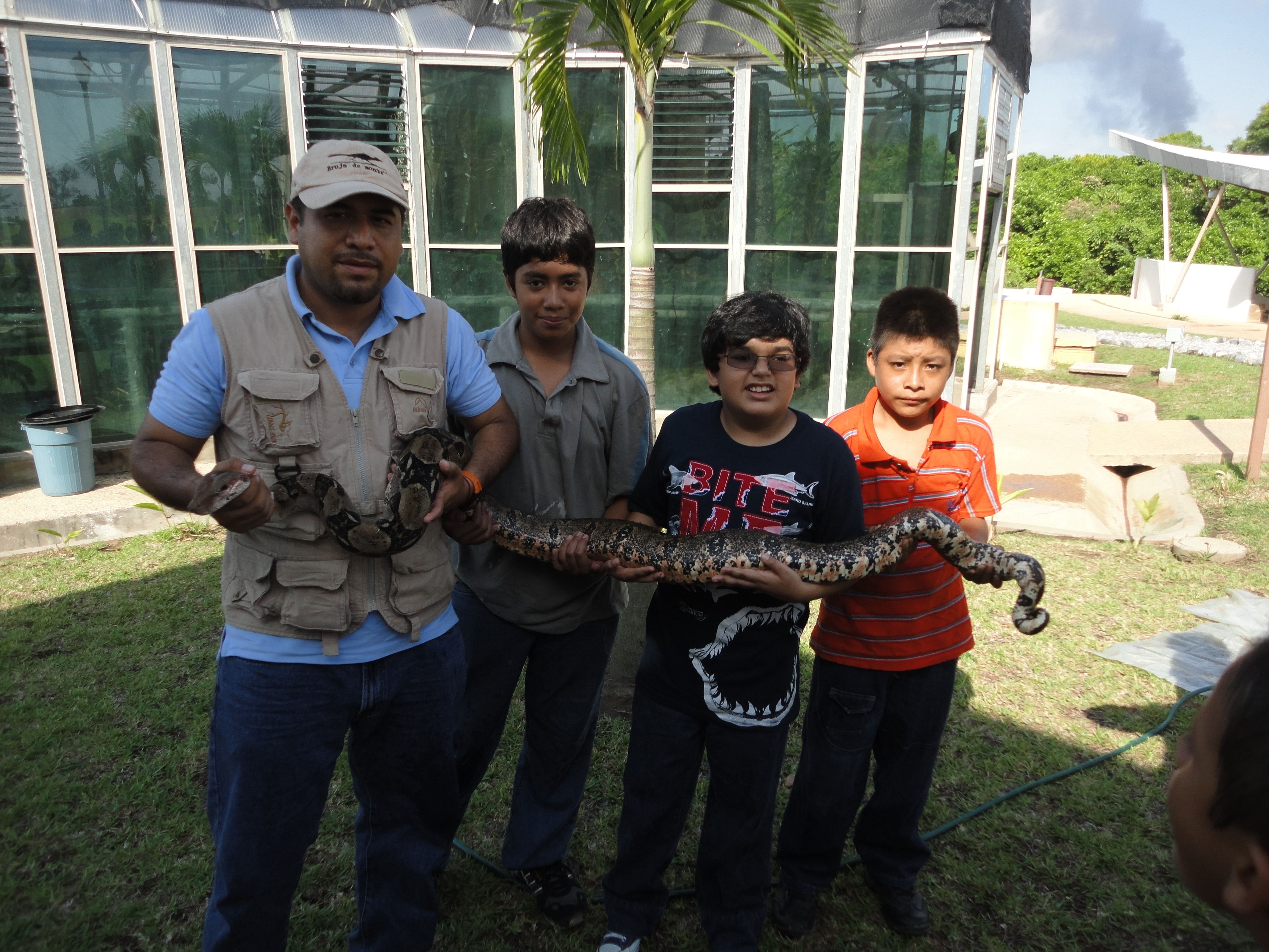 El Biólogo Gabriel Cruz en el taller de reptiles para niños, en su programa de Educación Ambiental.