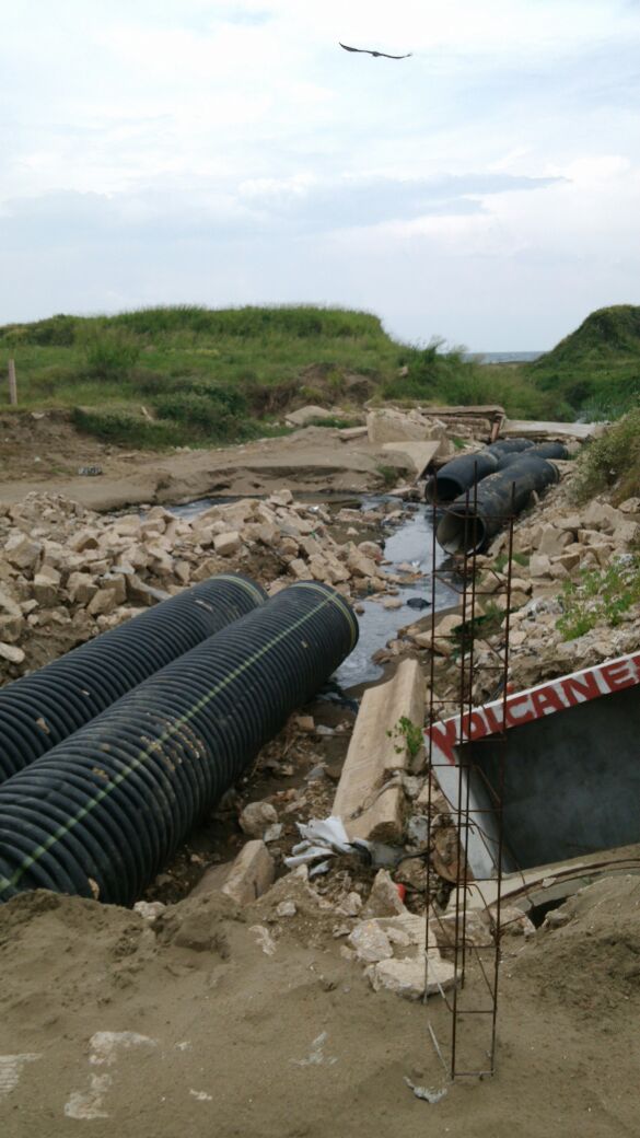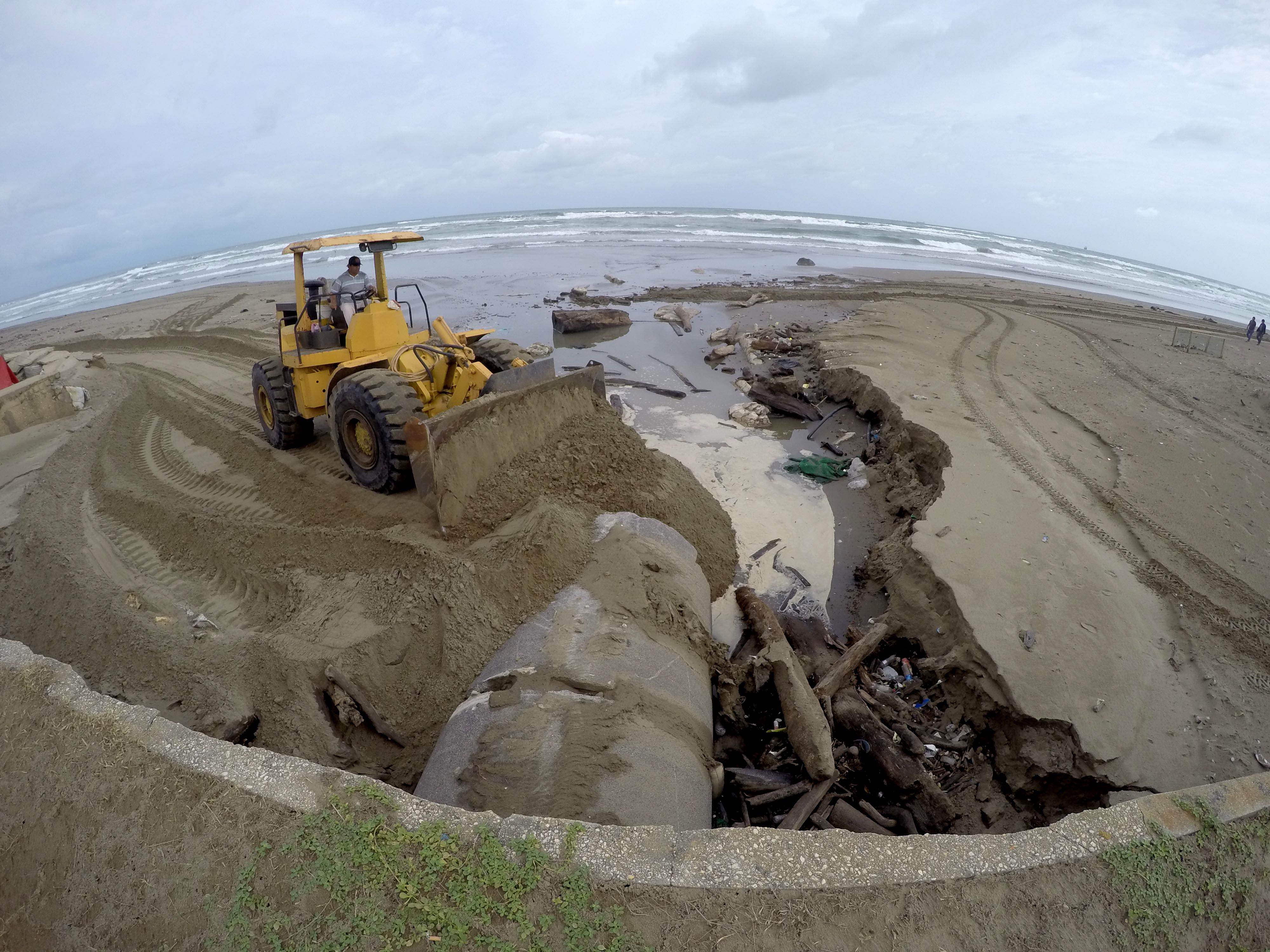 En días pasados, el fotorreportero Sergio Balandrano publicó en COSTA Veracruz que la Secretaría de Obras Públicas del Ayuntamiento estaba utilizando maquinaria pesada para cubrir con arena los canales de aguas negras residuales que vierten hacia las playas de Coatzacoalcos.