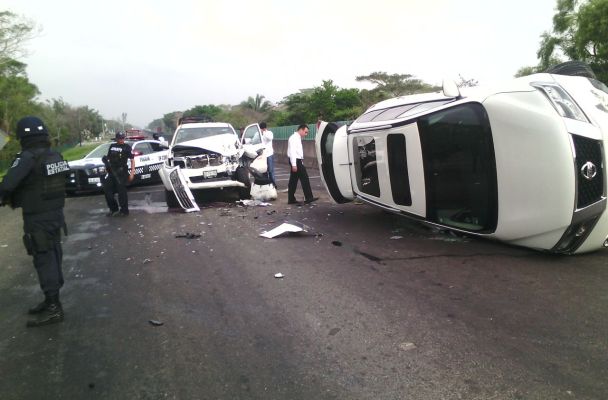 Medellín, Veracruz.- En pleno desarrollo de la Semana Santa, el Obispo de Xalapa, monseñor Hipólito Reyes Larios, sufrió esta mañana un accidente de volcadura en el vehículo donde viajaba por el libramiento Paso del Toro Santa Fe, del municipio de Medellín del estado de Veracruz.