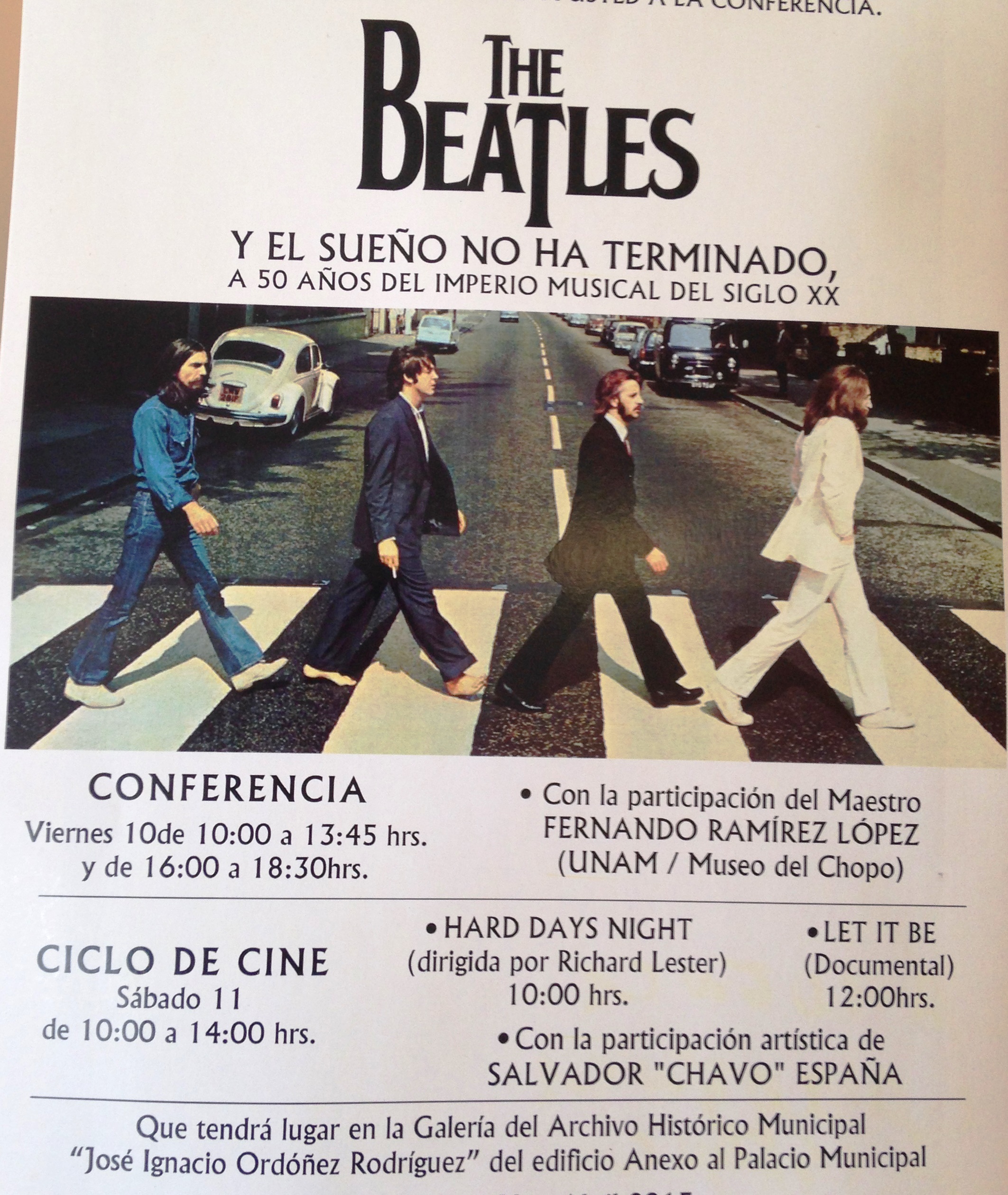 El sábado 11, un ciclo de cine: a las 10:00 horas, Hard Days Night, dirigida por Richard Lester; a las 12:00 horas, Let it be, documental; y posteriormente la presentación artística de Salvador “Chavo” España.