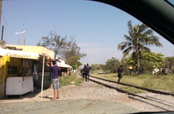 Otro de los puntos donde se implementó este operativo fue en las vías de la colonia 18 de marzo donde los indocumentados se ponen a mendigar, piden dinero para su «taco», ahí en ese punto de Coatzacoalcos los federales persiguieron a un grupo de migrantes que huyeron tras el operativo.
