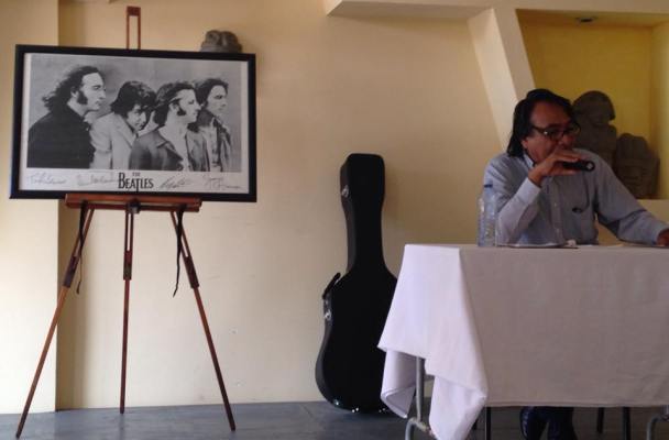 El expositor narró vivencias, anécdotas de la banda integrada por John Lennon, Paul McCartney, Ringo Starr y George Harrison, en un ambiente de nostalgia por esos tiempos del buen rock.