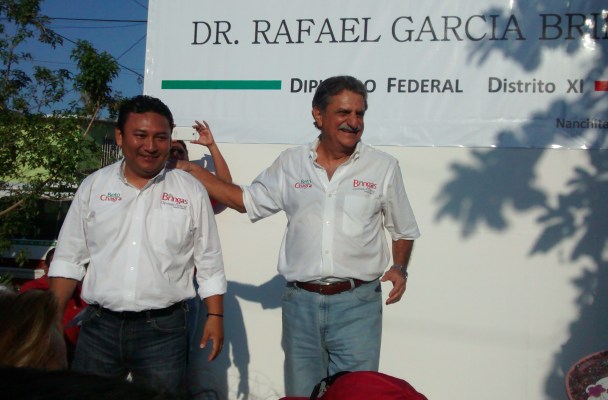 Pocos asistentes y para variar le cambian de nombre al candidato del PRI a la diputación federal, Rafael García Bringas. Fue el mismo presidente del PRI nanchiteco que se confundió de candidato