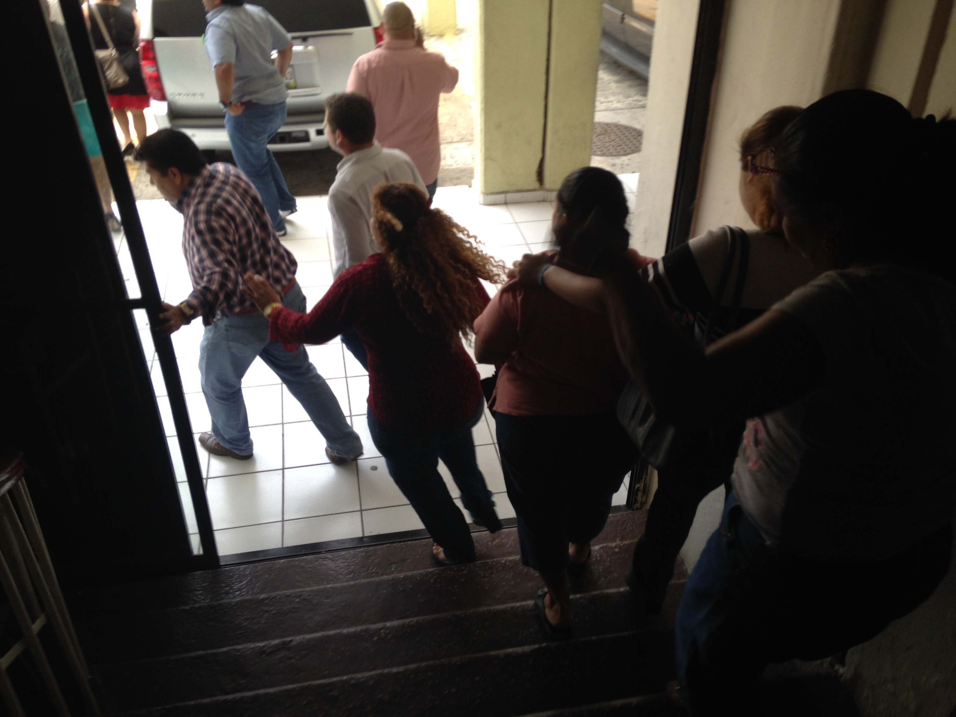 En el Ayuntamiento de Coatzacoalcos, la gente salió prácticamente huyendo en pánico del edificio municipal (Foto: Rocío Magaña)