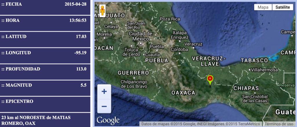 De acuerdo a datos preliminares, del Sistema Sismológico Nacional, se trató de SISMO con epicentro al norte de Matías Romero, en Oaxaca, con magnitud 5.5
