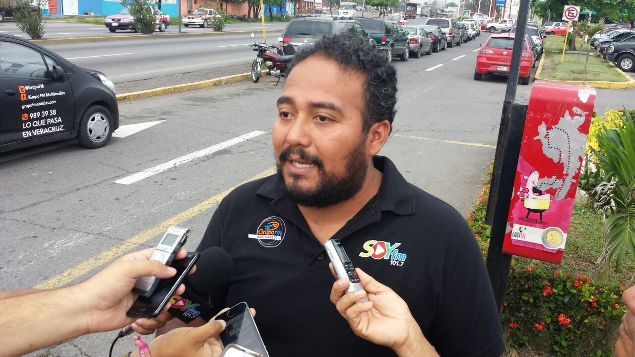 El reportero plenamente identificado por su camisa con logotipo y su auto señaló que su credencial de Grupo FM estaba en su coche y mostró la credencial oficial.
