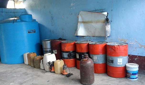En el inmueble inspeccionado, se encontraron 17 contenedores de diversas capacidades, todos con hidrocarburo en su interior y que en conjunto contenían aproximadamente 12 mil litros, así como un arma de fuego tipo revolver calibre 38 special.