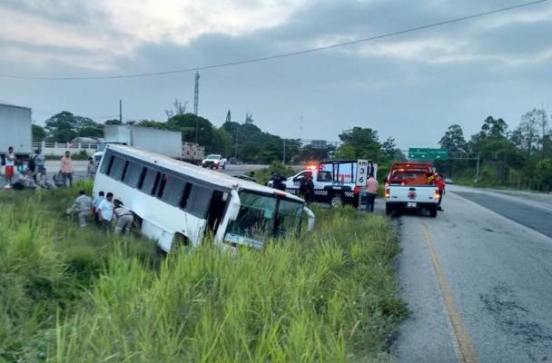 La volcadura del camión en la carretera en el kilómetro 36, de Coatzacoalcos hacia Villahermosa, ocasionó que varios trabajadores de la construcción del complejo Etileno XXI resultaran severamente lesionados.