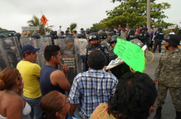 Ya hay paso libre por el Puente Coatzacoalcos I, los manifestantes procedieron a disolver el bloqueo ante la presencia de los cuerpos policiacos que con escudos impulsaron el desalojo.