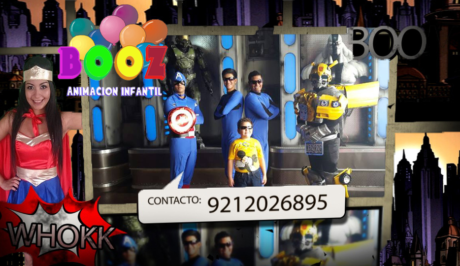 La Liga de Súperheroes BOOZ Producciones… contratálos para tus fiestas al teléfono celular 921 202 68 95 o al email: cinecoproducciones@gmail.com