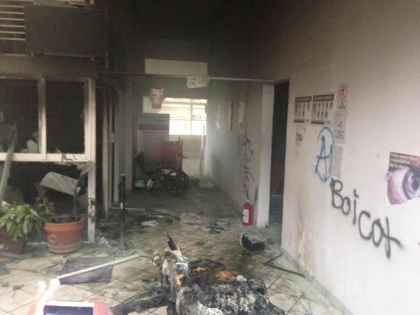 Encapuchados prenden fuego en módulo del INE en Ruiz Cortines, en Xalapa.