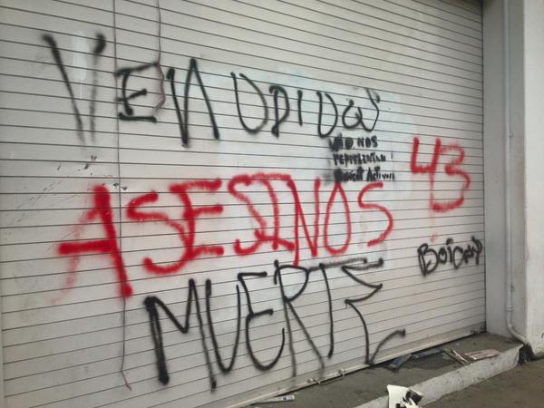 Hicieron pintas en la fachada con las frases: “vendidos” y “asesinos”