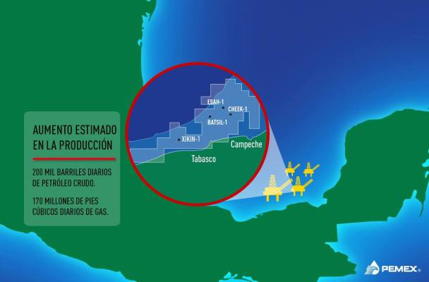 Del monto agregado mencionado, en la Sonda de Campeche se podrán producir 100 mil barriles diarios de crudo y alrededor de 80 millones de pies cúbicos de gas, los que se podrán incorporar a la producción a corto plazo por ubicarse cercanos a infraestructura de otros campos, y contribuirán a revertir la tendencia declinante en la zona.