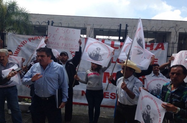 Miembros del Movimiento Popular Francisco Villa, se manifiestaron el mediodía de este jueves en las afueras de las instalaciones del Palacio Legislativo en contra del Secretario de Infraestructura y Obras Públicas, Tomás Ruiz González.