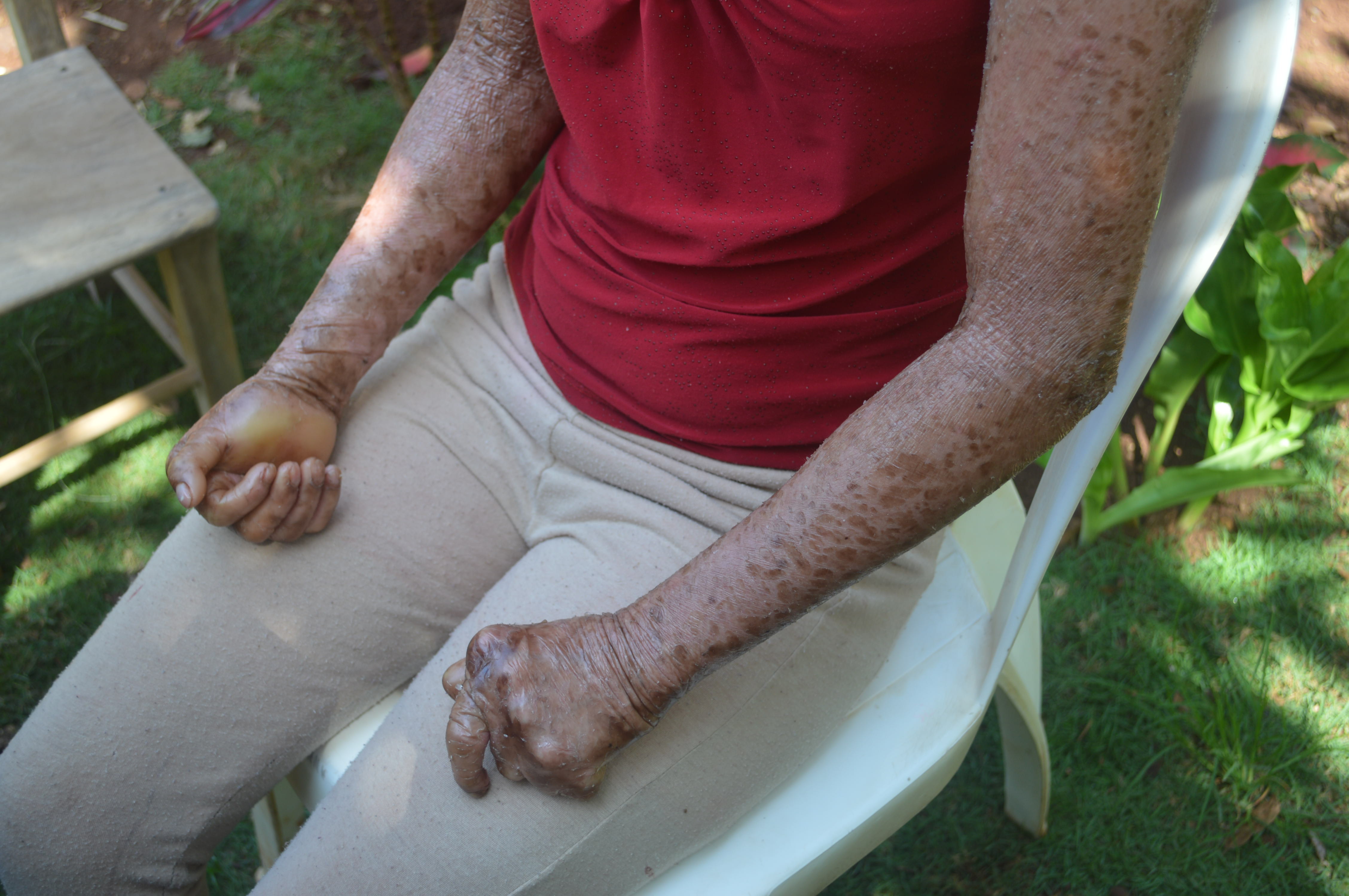 La ictiosis arlequín consume toda la piel, en una resequedad intensa. Incapacita manos y pies, por lo que los enfermos quedan incapacitados para trabajar.