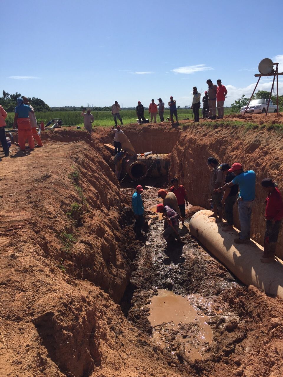 Desde temprana hora CMAS Coatzacoalcos en conjunto con la CAEV y el Ayuntamiento Coatzacoalcos 2014-2017 se encuentran realizando los trabajos de interconexión para mejorar el suministro del vital líquido