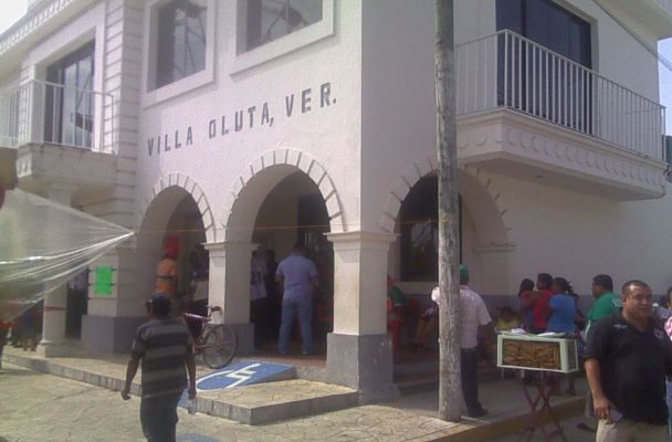 Villa Oluta, Ver.- Al menos cien personas se encuentran en la parte baja del palacio municipal exigiendo la destitución del comandante policiaco luego de que éste esposara, detuviera y encerrara a la regidora única del pueblo.