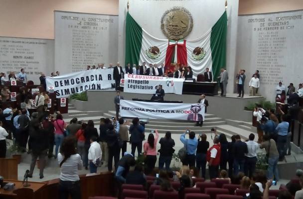 Las fracciones de partidos de oposición en el Congreso estatal intentaron reventar el pleno de la Legislatura