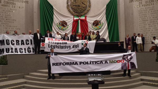 Debido a que no hubo una verdadera democracia para analizar y debido al rechazo de las mociones en la modificación del Código Político-Electoral el Grupo Legislativo del PAN se retiró como una manifestación de inconformidad.