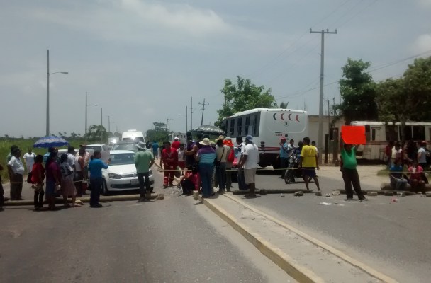 Bloquean carretera 4 carriles a Nanchital, las familias de desalojados del Rodeo