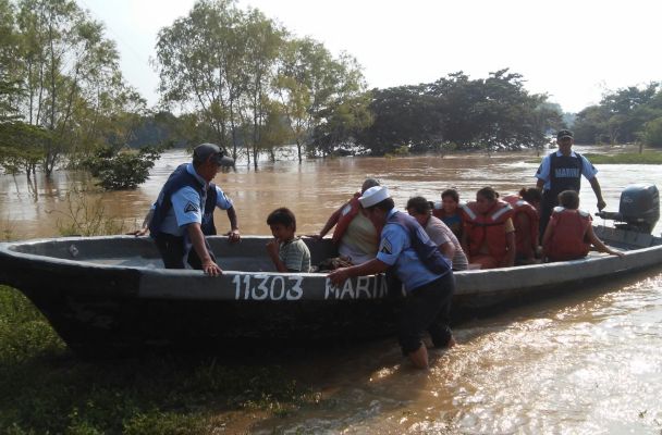 La Secretaría de Marina Armada de México (Semar) Protección Civil de Acayucan y los brigadistas de la Cruzada sin hambre, participaron en las labores de rescate de estas familias que estaban en comunidades rurales de Acayucan, completamente inundadas.