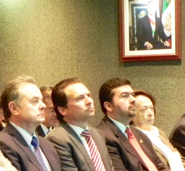 El titular de la SENER así como el director de Pemex observan el proceso de licitación, vía televisión transmitida en internet.