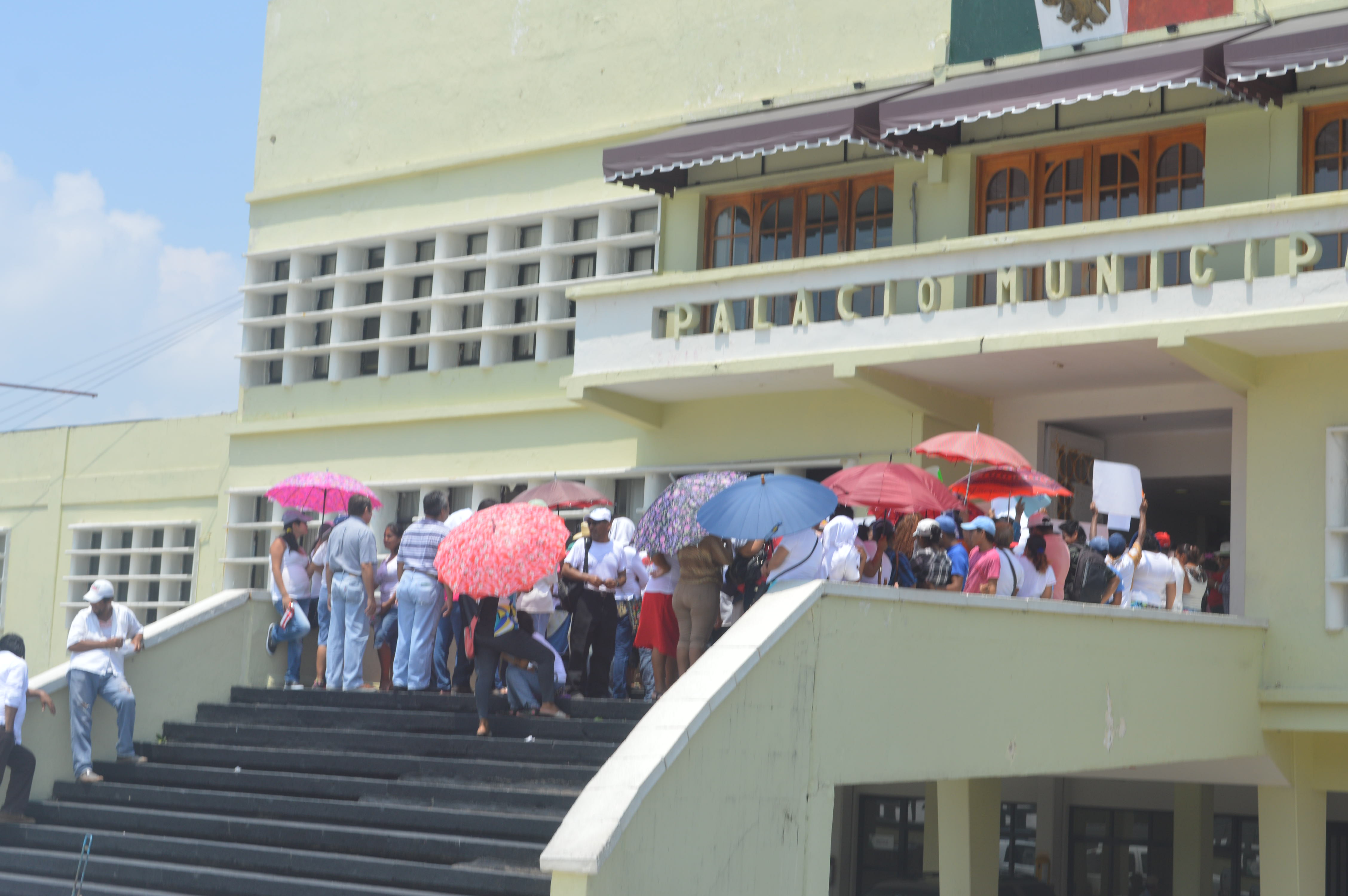 Manifestantes de la colonia Trópico de la Ribera se manifestaron afuera del Ayuntamiento; exigían hablar con Joaquín Caballero pero éste se escondió.