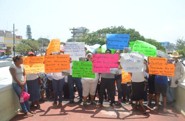 Coatzacoalcos, Ver.– Cientos de familias que fueron desalojadas de un predio invadido en la Colonia Trópico de la Ribera se manifestaron en el Ayuntamiento contra el alcalde Joaquín Caballero ya que con engaños incumplió los acuerdos suscritos de no ser desalojados violentamente.