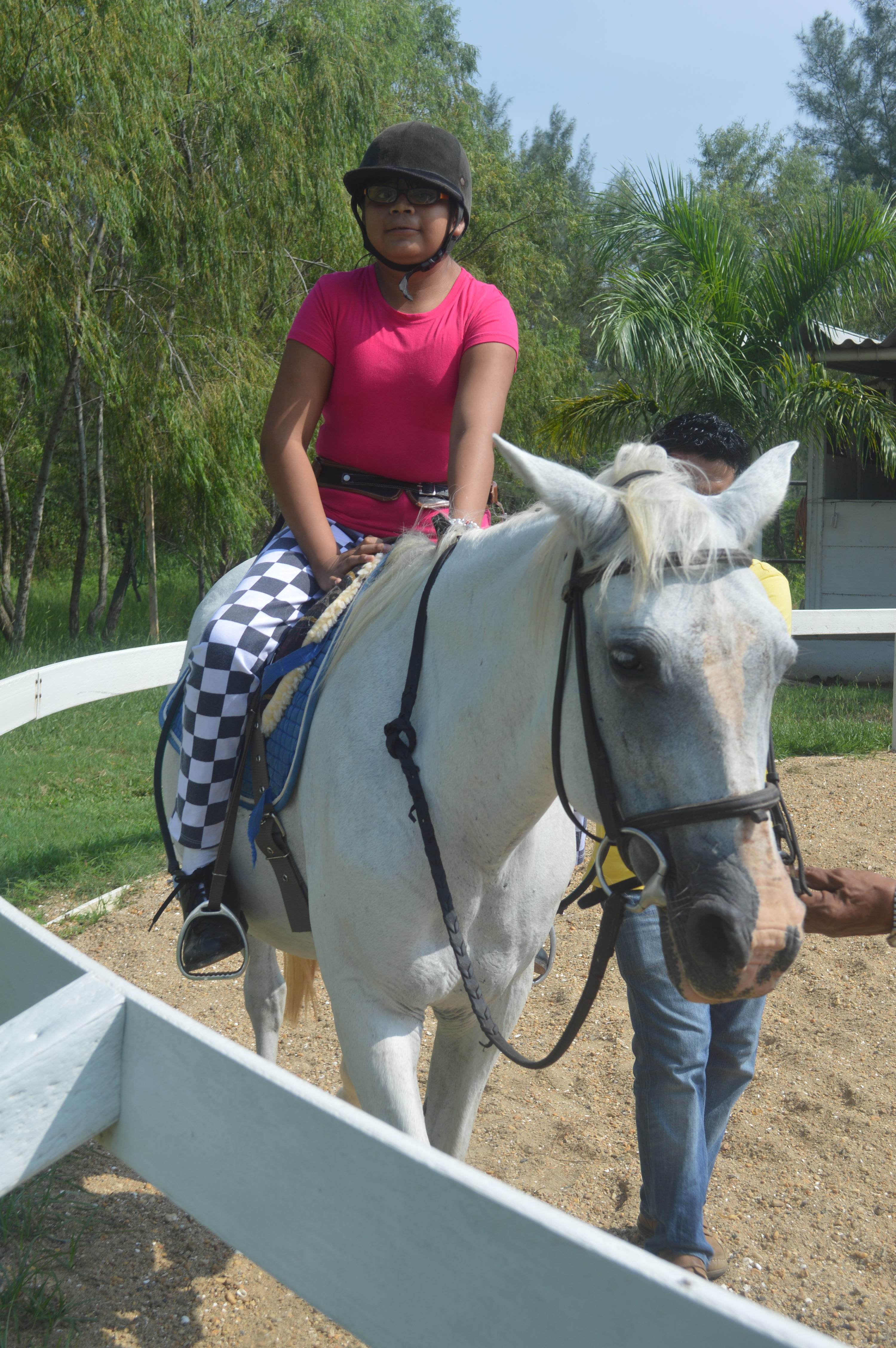 La adolescente Zurizaday está rehabilitándose con la equinoterapia. Está superando su atrofia cerebral.